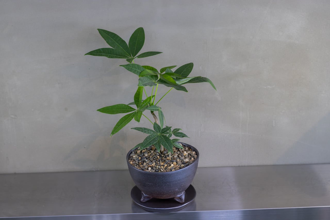 手を広げたようにつく光沢のある緑の葉が特徴的で、育てやすく人気な植物です。