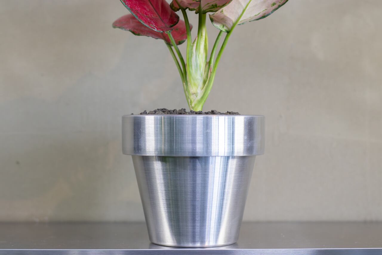 M75の植木鉢(アルミ4号)に植え込み、受皿(ワンポッツ)と合わせての販売になります。