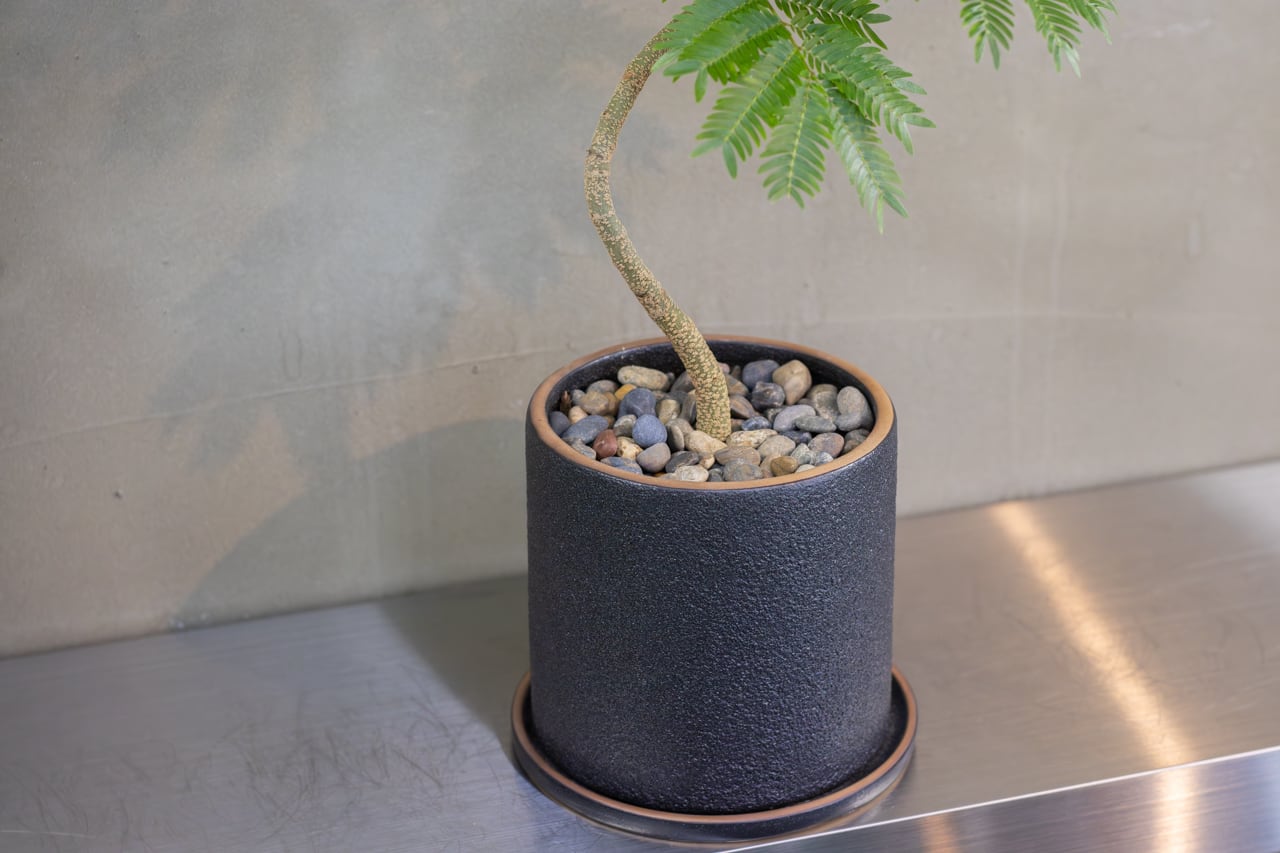 植木鉢(黒)に植え込み、受皿と合わせての販売になります。