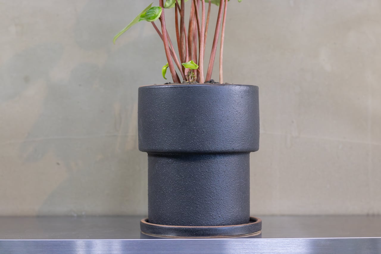 植木鉢(黒)に植え込み、受皿と合わせての販売になります。