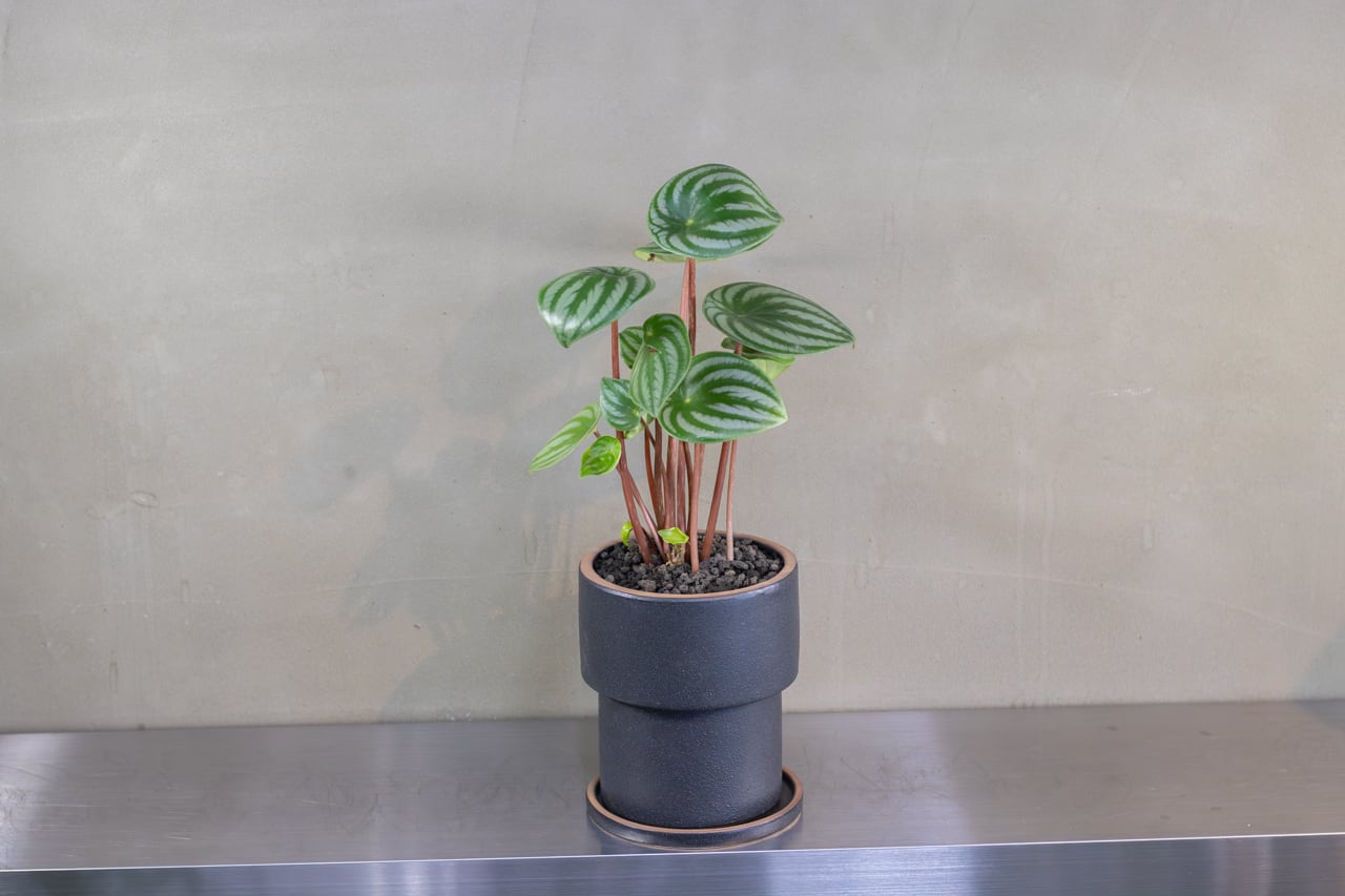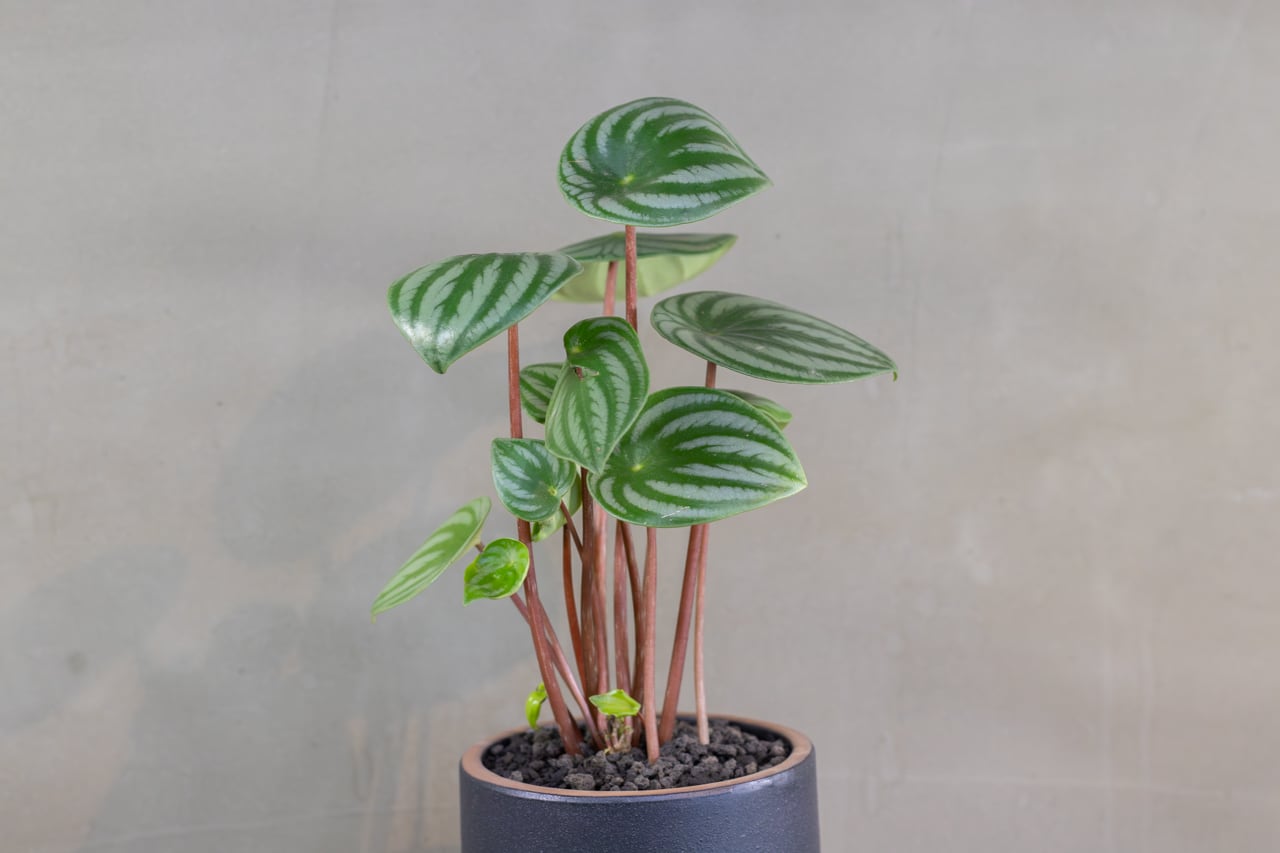 丸みのある葉の形と赤い茎が美しく、スイカに似た模様からスイカぺぺとも呼ばれています。他肉質で比較的管理がしやすく、人気な植物です。