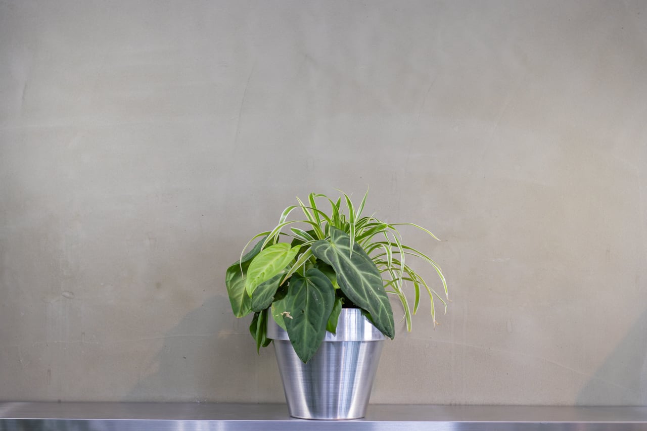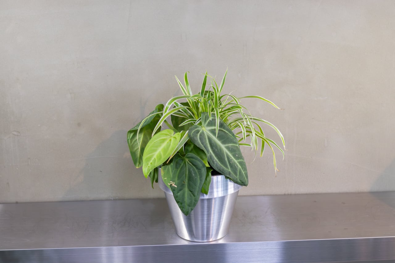 M75の植木鉢(アルミ5号)に植え込み、受皿(ワンポッツ)と合わせての販売になります。