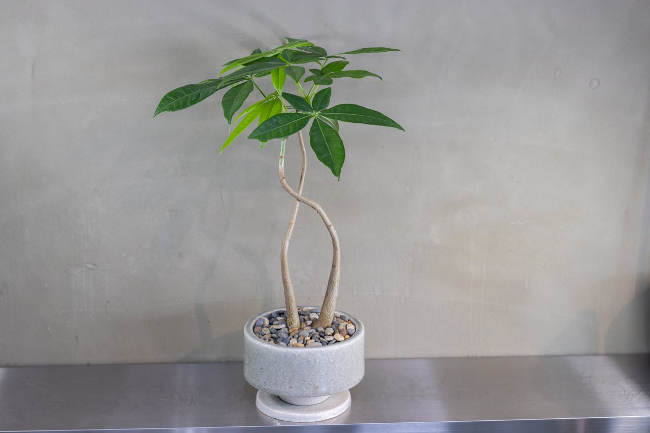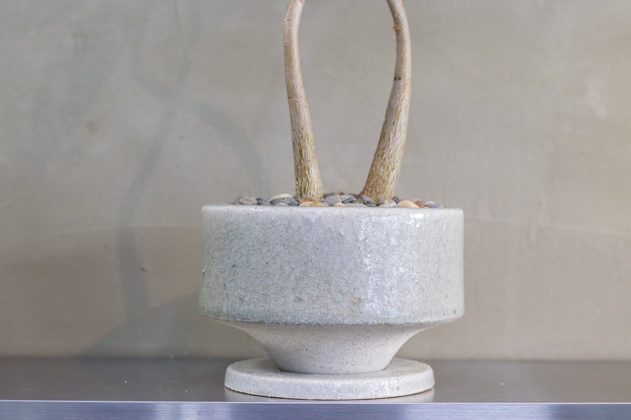植木鉢(グレー)に植え込み、受皿と合わせての販売になります。