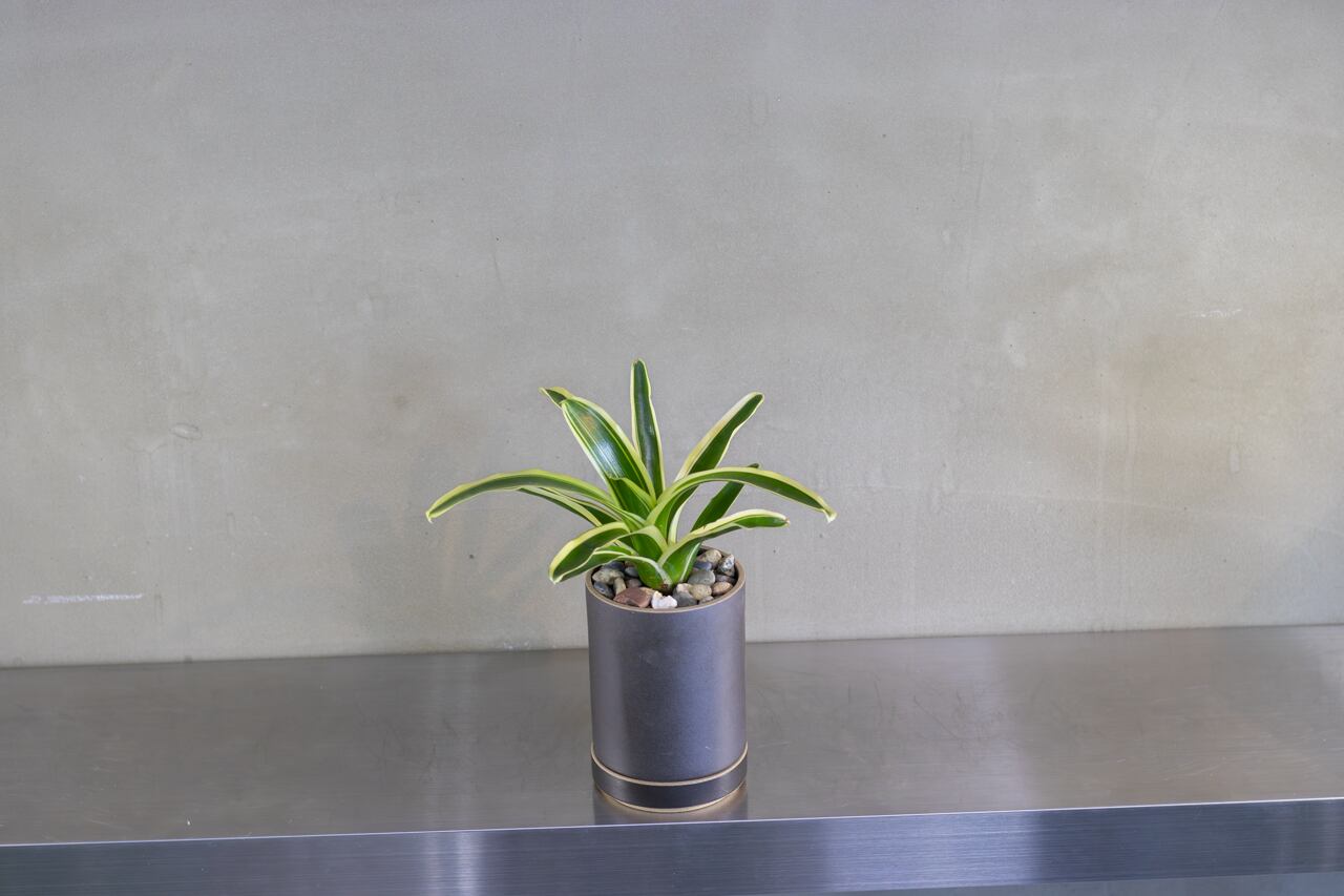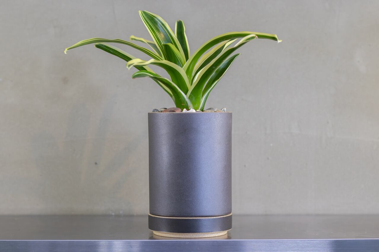 HASAMI PORCELAINの植木鉢(ブラック)に植え込み、受皿と合わせての販売になります。