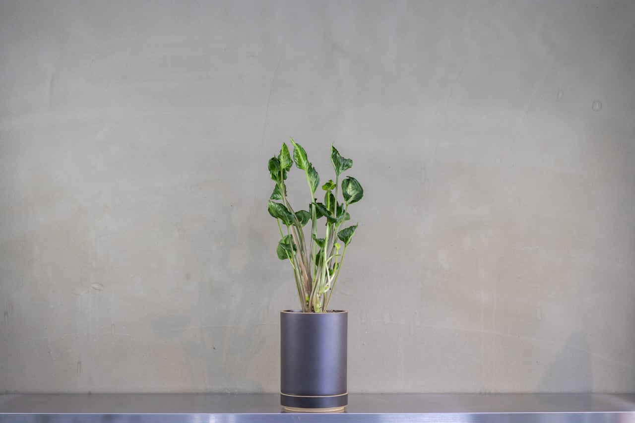 HASAMI PORCELAINの植木鉢(ブラック)に植え込み、受皿と合わせての販売になります。