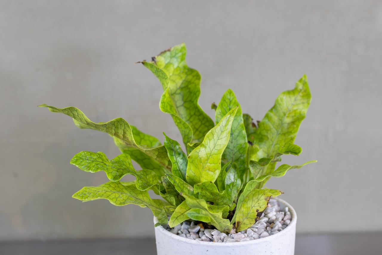 その名の通り、ワニの皮のような光沢と、独特な葉脈模様が特徴のシダ植物です。