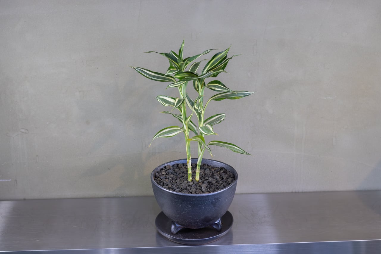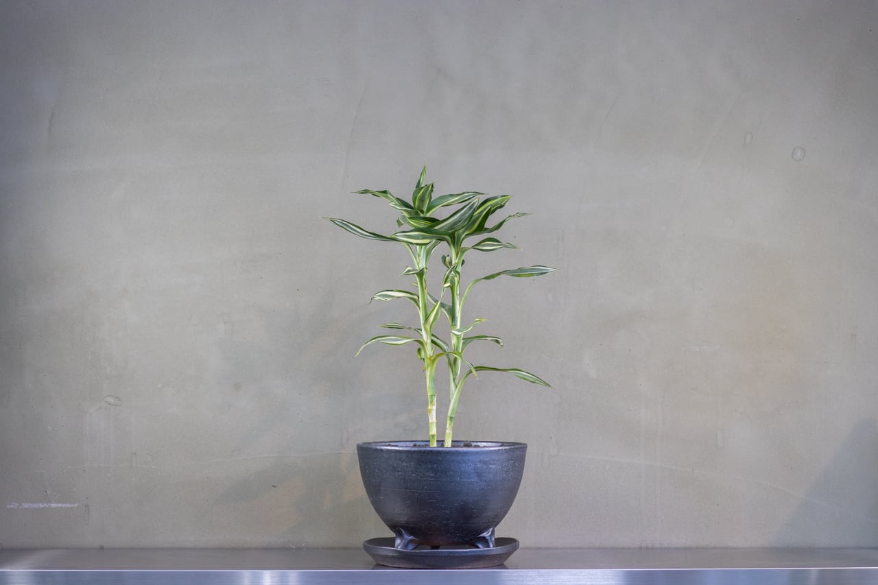 白いラインや黄色がかった葉が綺麗なドラセナ。育てやすく贈り物にもおすすめの植物です。