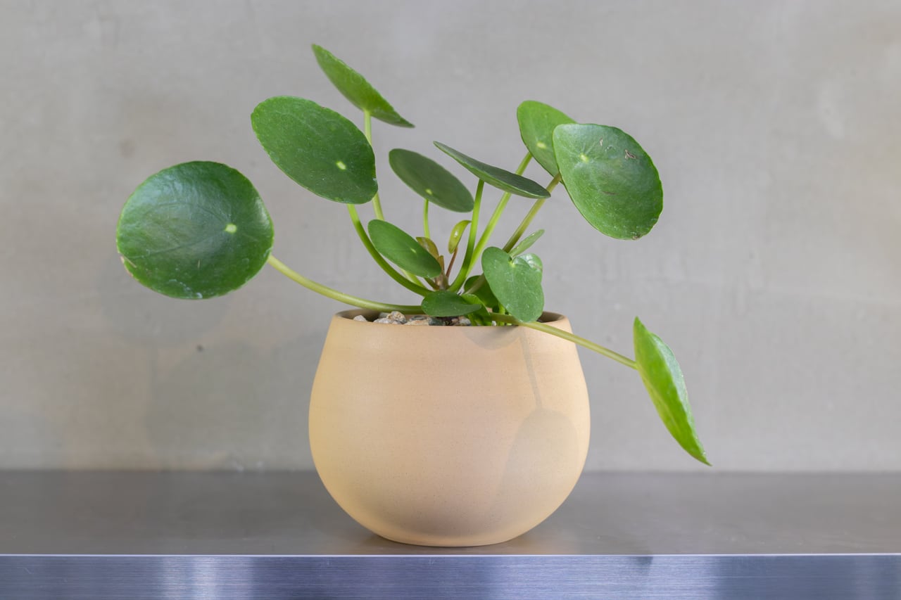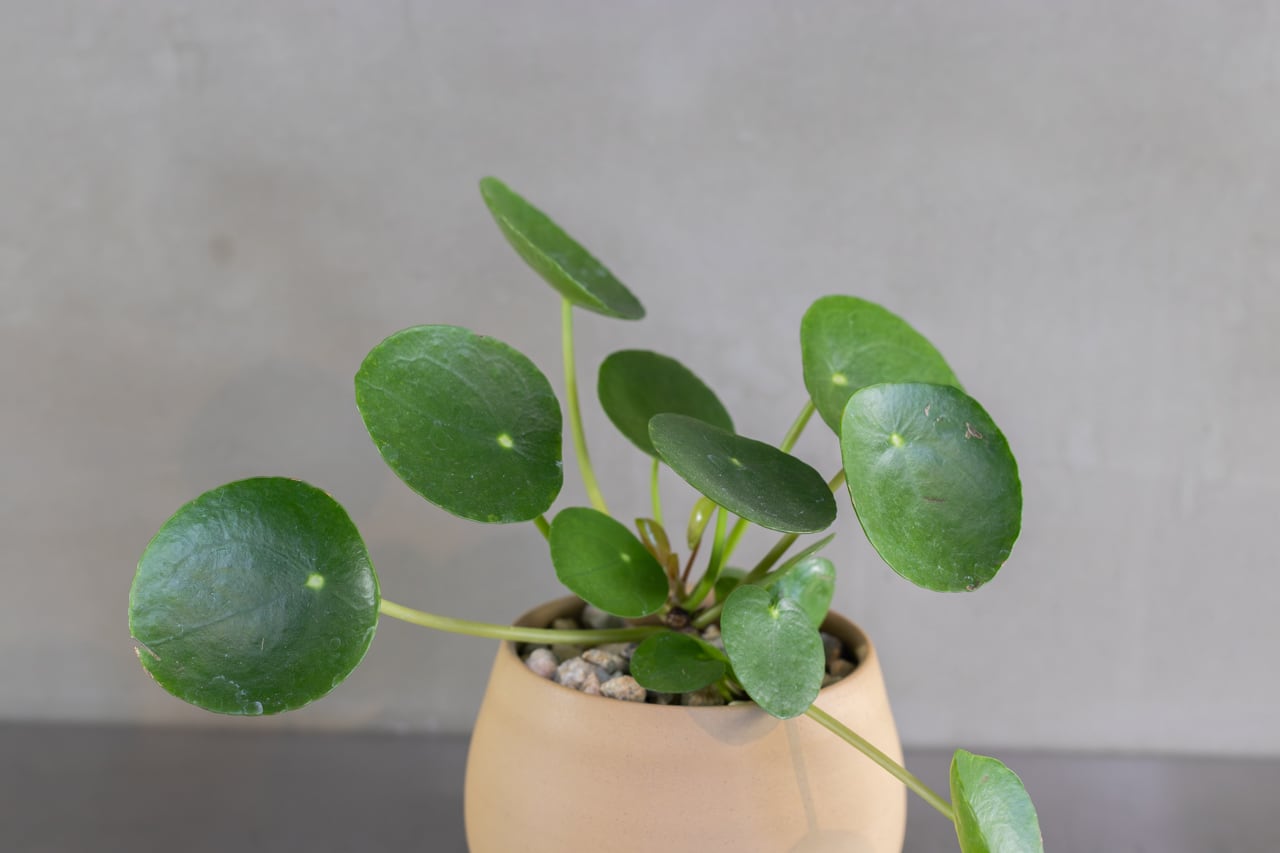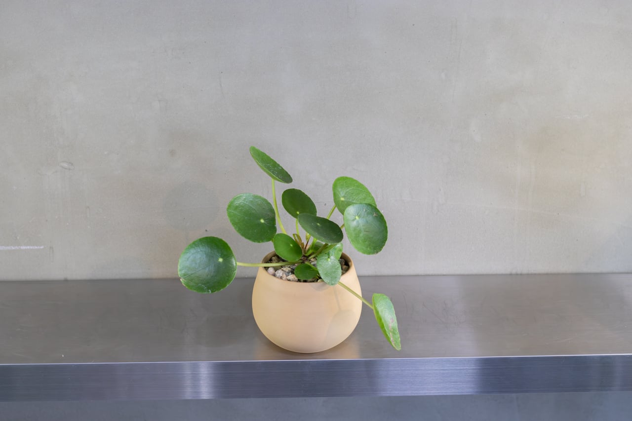 艶やかな緑の丸い葉が特徴的なペペロミア。他肉質な葉なので、お水やりの頻度も少なく丈夫で可愛らしい植物です。別名でパンケーキプランツとも呼ばれています。