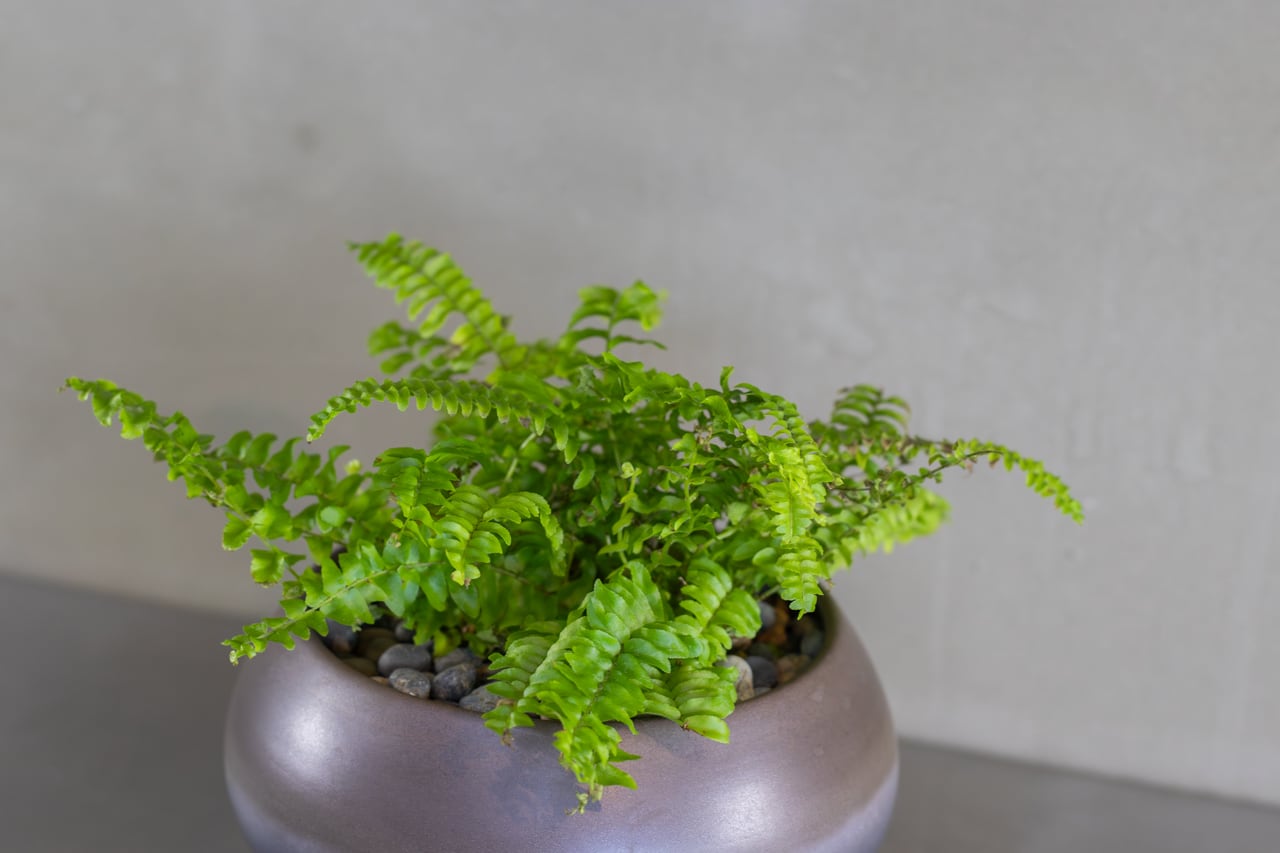 波打つような緑の葉が美しいタマシダの仲間です。くしゃくしゃと葉を縮れさせながら長く伸びる、ユニークで癒される風情の植物です。生長すると羽のように優雅に波打った姿となります。