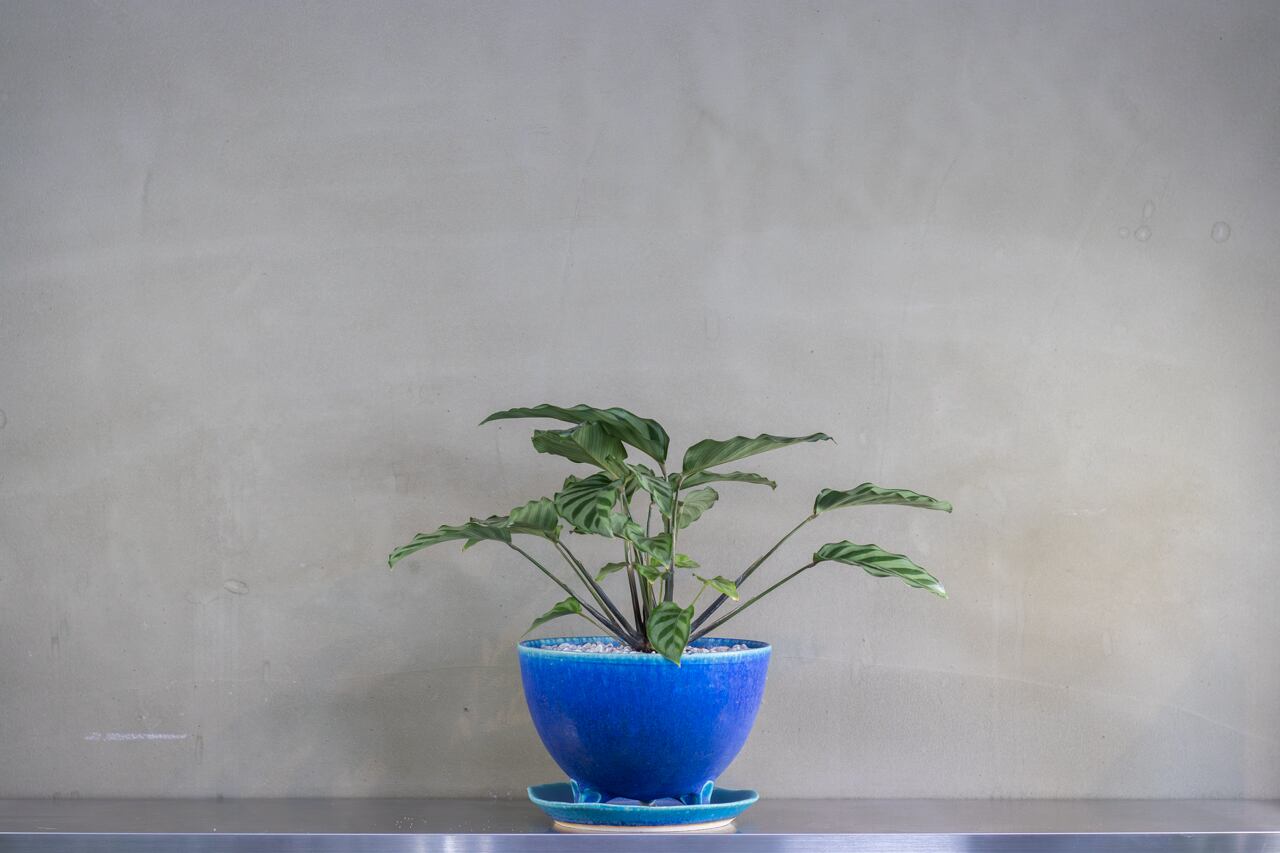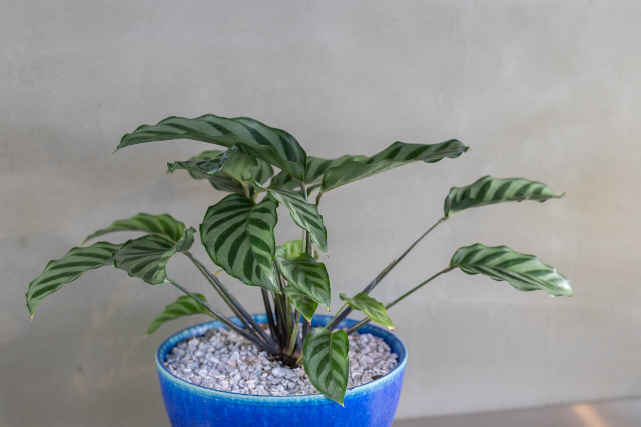 柔らかめの質感とホワイトとグリーンのコントラストの葉が魅力的なカラテアです。カラテアは派手な模様の品種が多いですが、フレディは比較的大人しくシックな印象の葉模様です。
