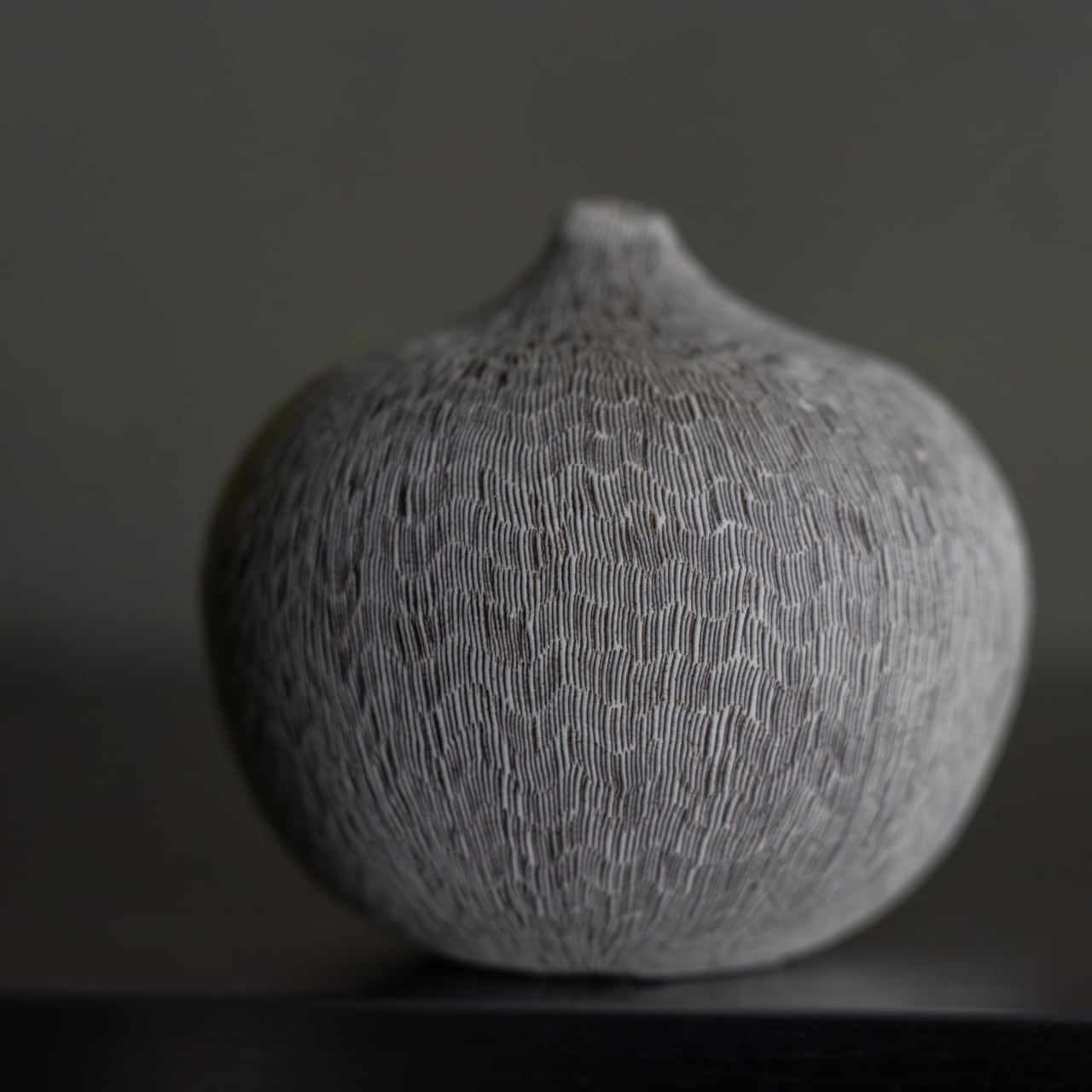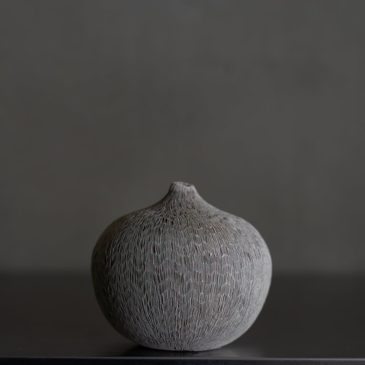 土の塊に木の細いヘラを押し当て、ひとつひとつ点を打っていく。無数の点を重ねることで、作為の中に無作為な表情が立ち上がり、自然物のような質感が生まれる象嵌の技法。そんな象嵌をはじめとする様々な技法によって、石の質感や風景の表情を映し出し、人工物でありながら、どこか自然物のような質感を宿した作品が生み出されています。