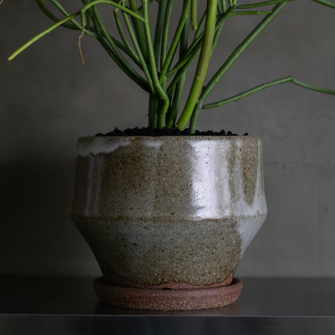 ひとつひとつ作られた鉢は、すべてデザインが異なり、受皿も合わせて仕立てられています。どれも日常に自然と馴染むシンプルな佇まいの中に、個性を感じさせます。