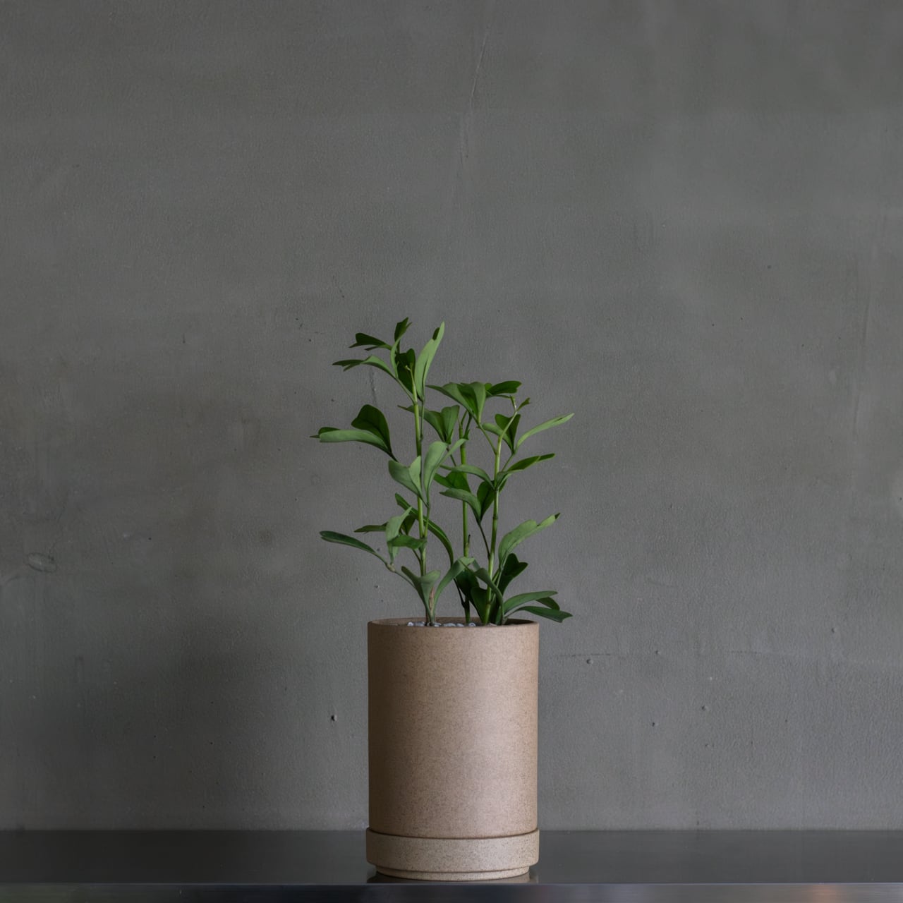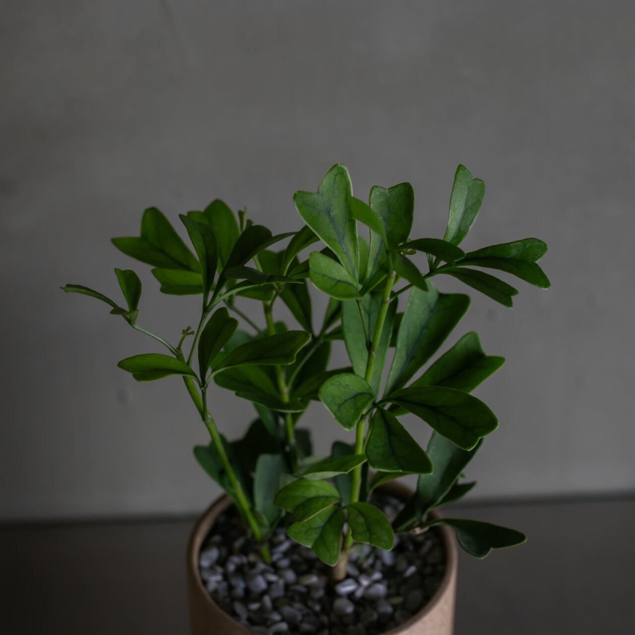 シャープな三角の葉が魅力のシェフレラ。個性的で存在感はありつつ、どんな空間にもすっと馴染むスタイリッシュな植物です。