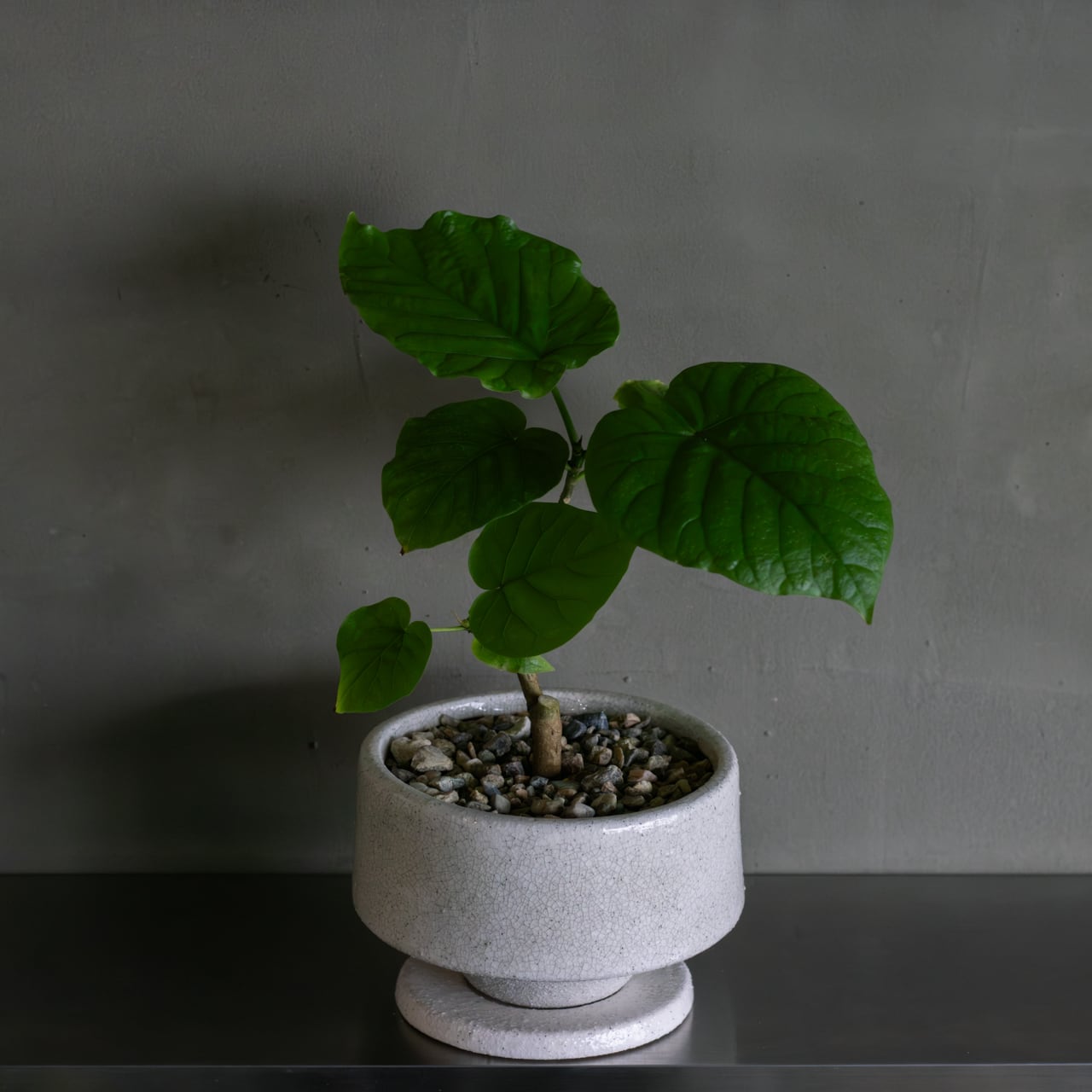 大きなハート型の葉が特徴的なゴムの木です。やわらかい質感と明るいグリーンの葉色が、優しくナチュラルな雰囲気をもたらします。