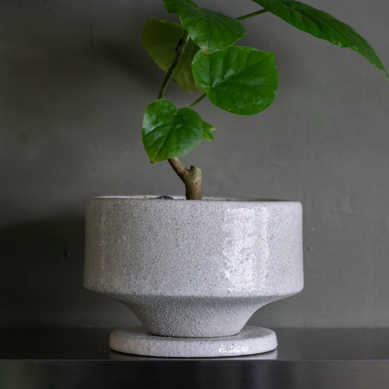 植木鉢(白)に植え込み、受皿と合わせての販売になります。