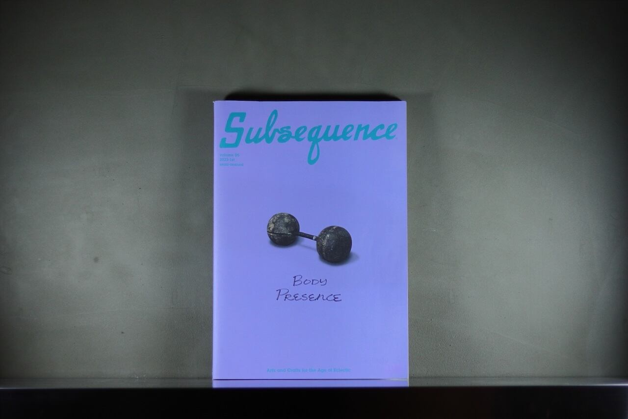 「Arts & Crafts for the Age of Eclectic(=”折衷”時代のアーツ&クラフト)」をテーマに、世代、性別、人種、国籍などにとらわれることなく、世界中の工芸と文化にまつわるトピックを幅広く掘り下げる実験的なプロジェクトとして制作されるマガジン、「Subsequence(サブシークエンス)」の第5号。テーマは「Body Presence(ボディ・プレゼンス/身体性)」。移動が制限され、日常のあらゆる行動がオンラインやリモートによって簡易に済まされがちになった今、改めて「実際に体で感じること」の大切さについて掘り下げる。巻頭エッセイはリアン・シャプトン(作家/アーティスト)、小野正嗣(作家)ほか、特集にはマイク・エーブルソン(ポスタルコ/デザイナー)、野口順哉(空間現代/ミュージシャン)ほか6名を取材。中綴じページを切り取って自分で作るDIYブック「『マイ・アーカイブ』ハンドメイド・ミニブック」の特別付録つき。