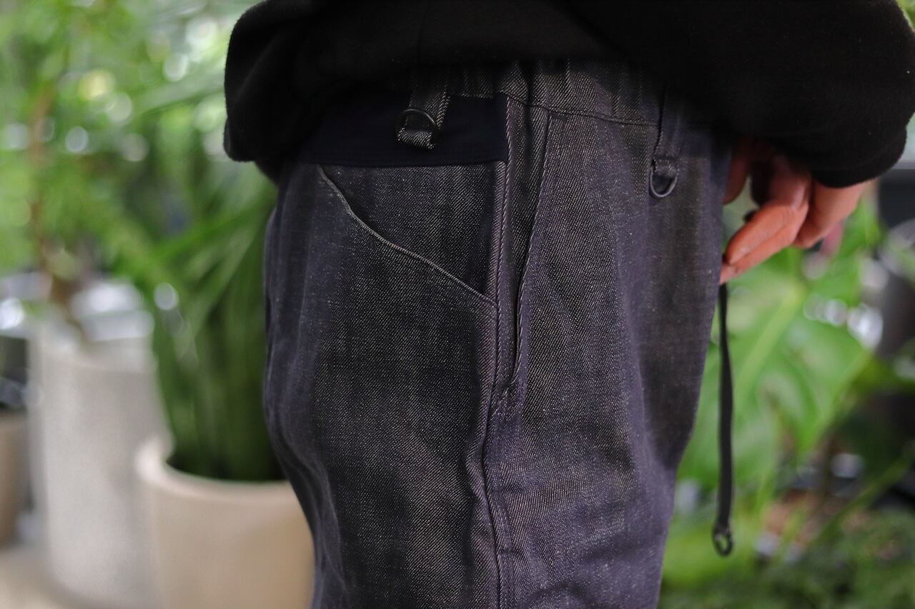 色落ちし難いデニム仕様のボンデッジデニムニッカパンツ
