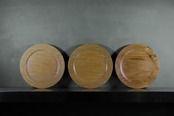 メープル(左・中央)クルミ(右)の木で作った直径約21cmのプレートです。メイン料理や取り皿に良いサイズとされています。軽くて持ち運びやすい形状になっているので盛り付けも安心です。