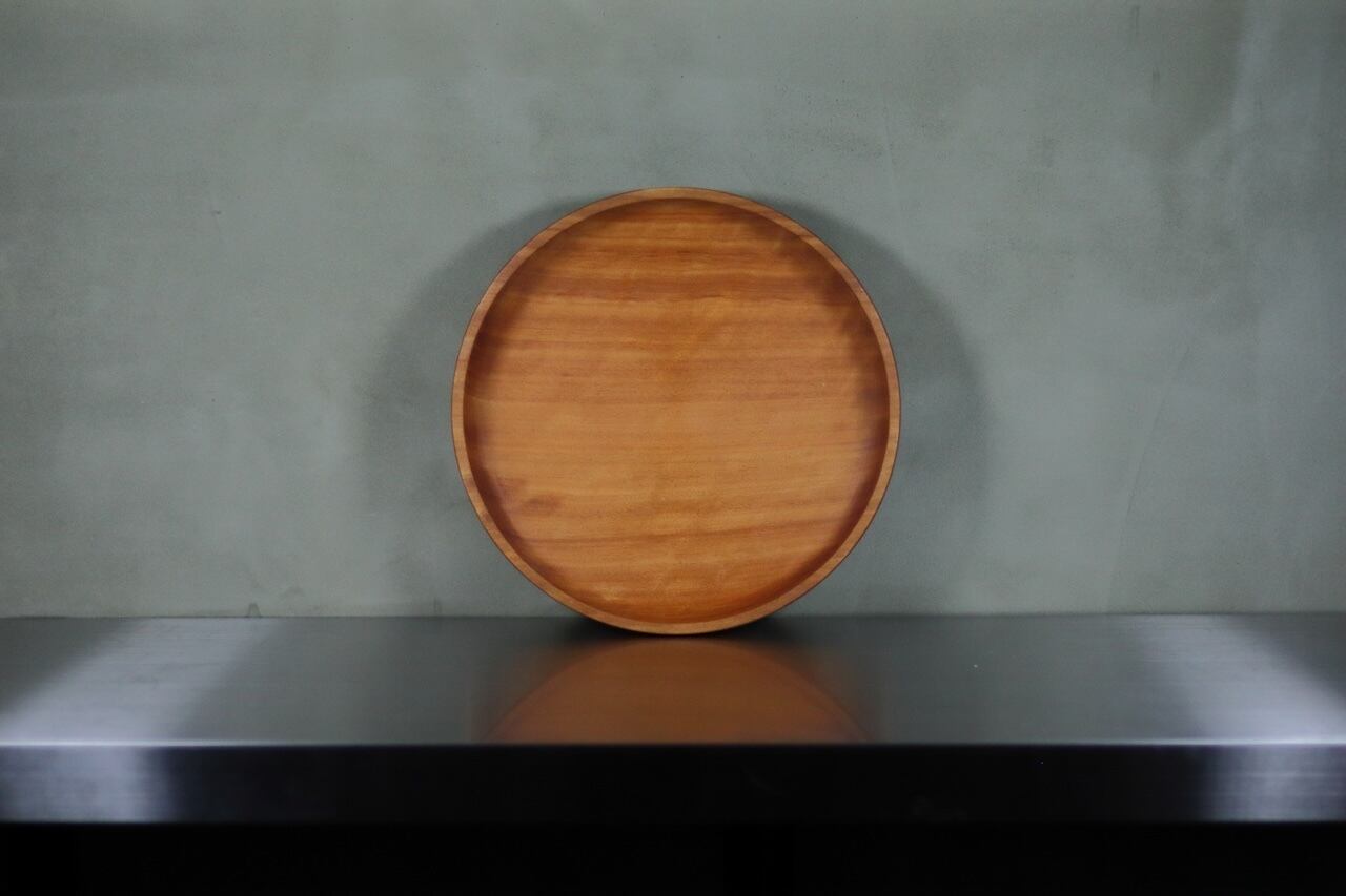 桃褐色の色鮮やかな木目が美しく、全面に綺麗な杢が出ている貴重な材から作成しており、光を当てると煌びやかに反射してキラキラと存在感を放ちます。サラダボウルやフルーツボウルなど深め加工を活かした用途でお使いいただけます。