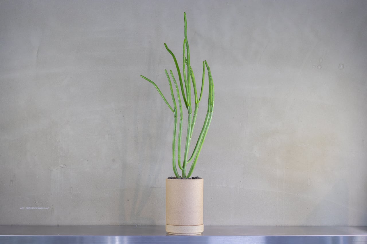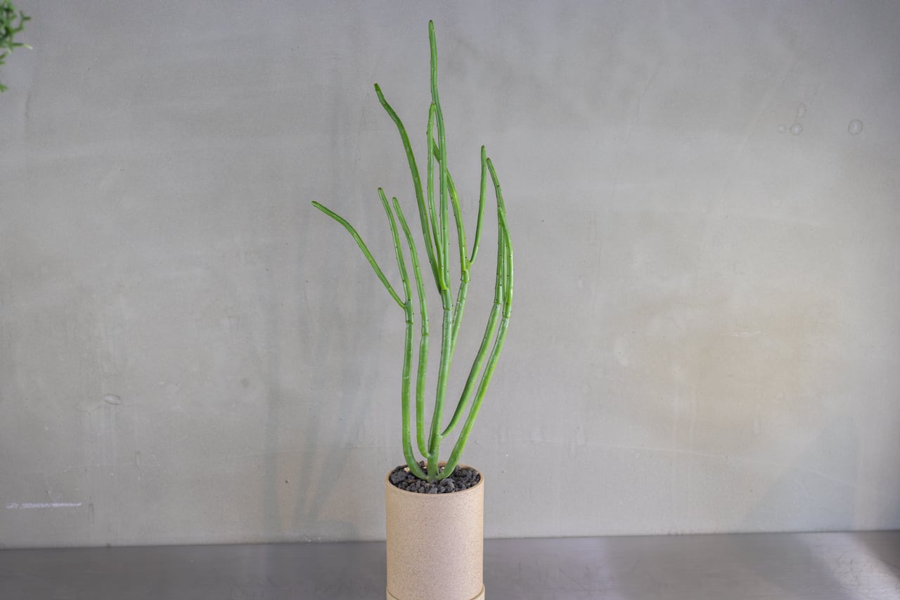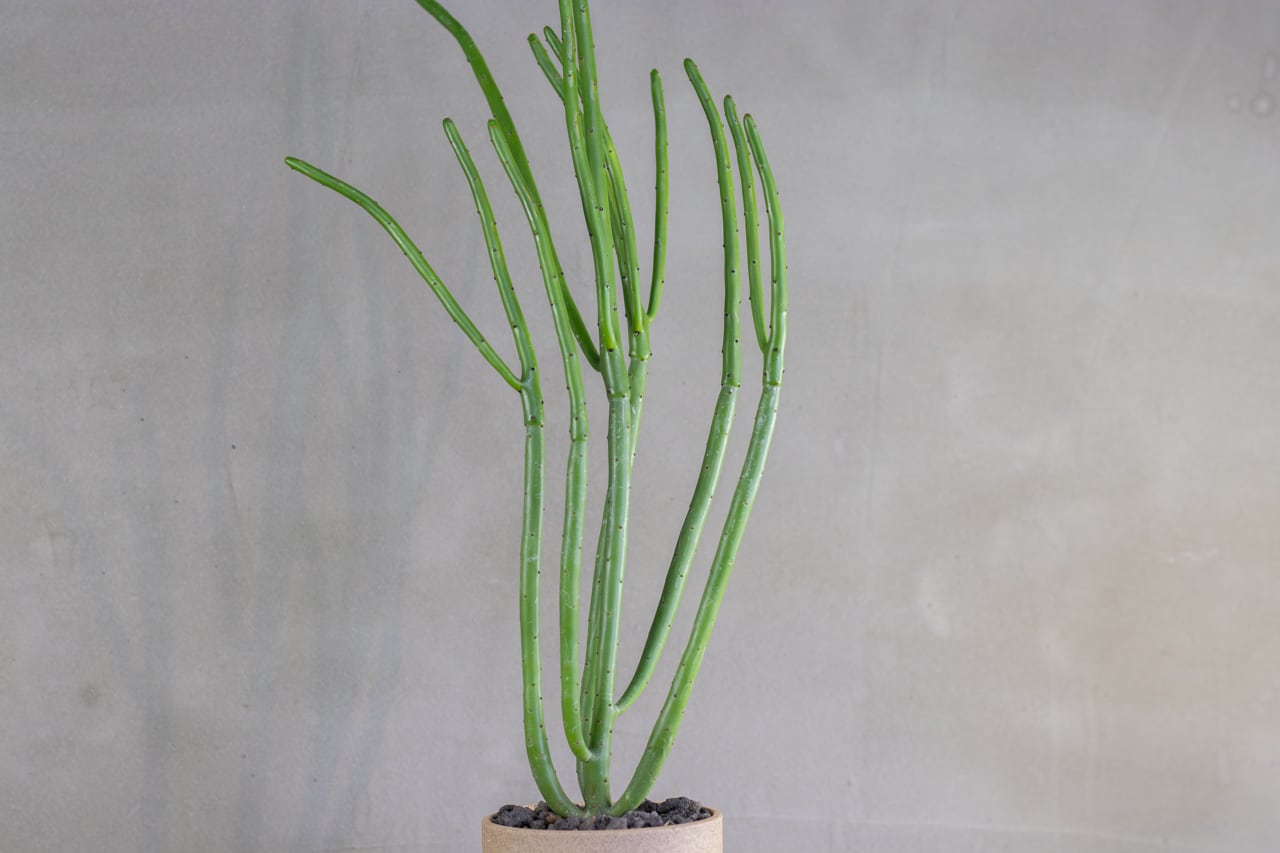 ニョキニョキと細長く伸びた幹が特徴的な多肉植物です。幹の先端には小さな葉が生えています。乾燥に強く管理しやすい植物です。