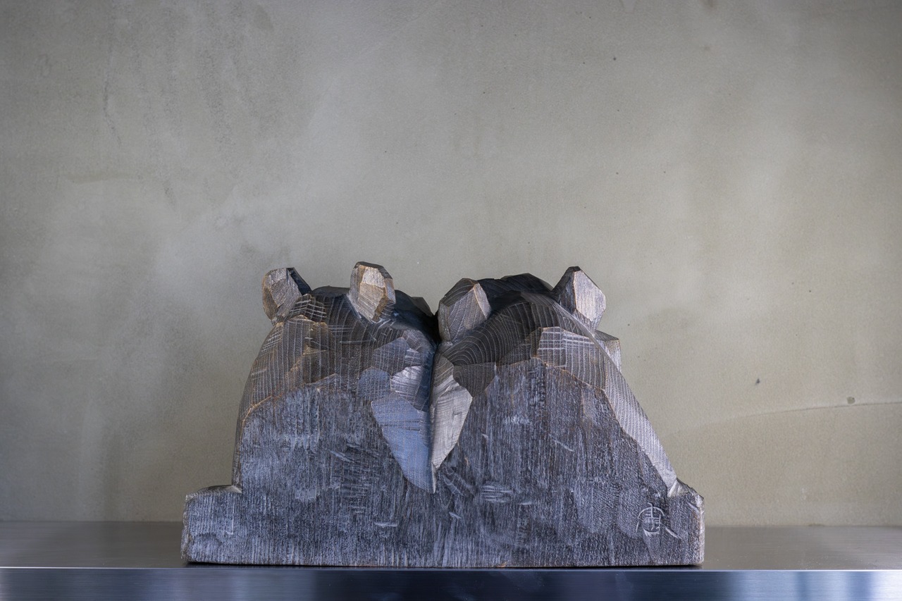 北海道旭川の巨匠彫刻家 佐藤憲治さん。メオト熊は、二頭が寄り添い幸せ溢れる表情が豊かでほっこりする木彫り熊です。