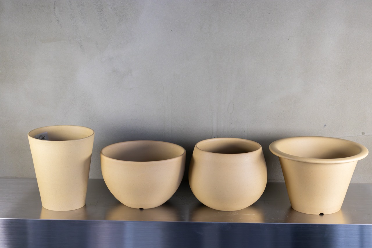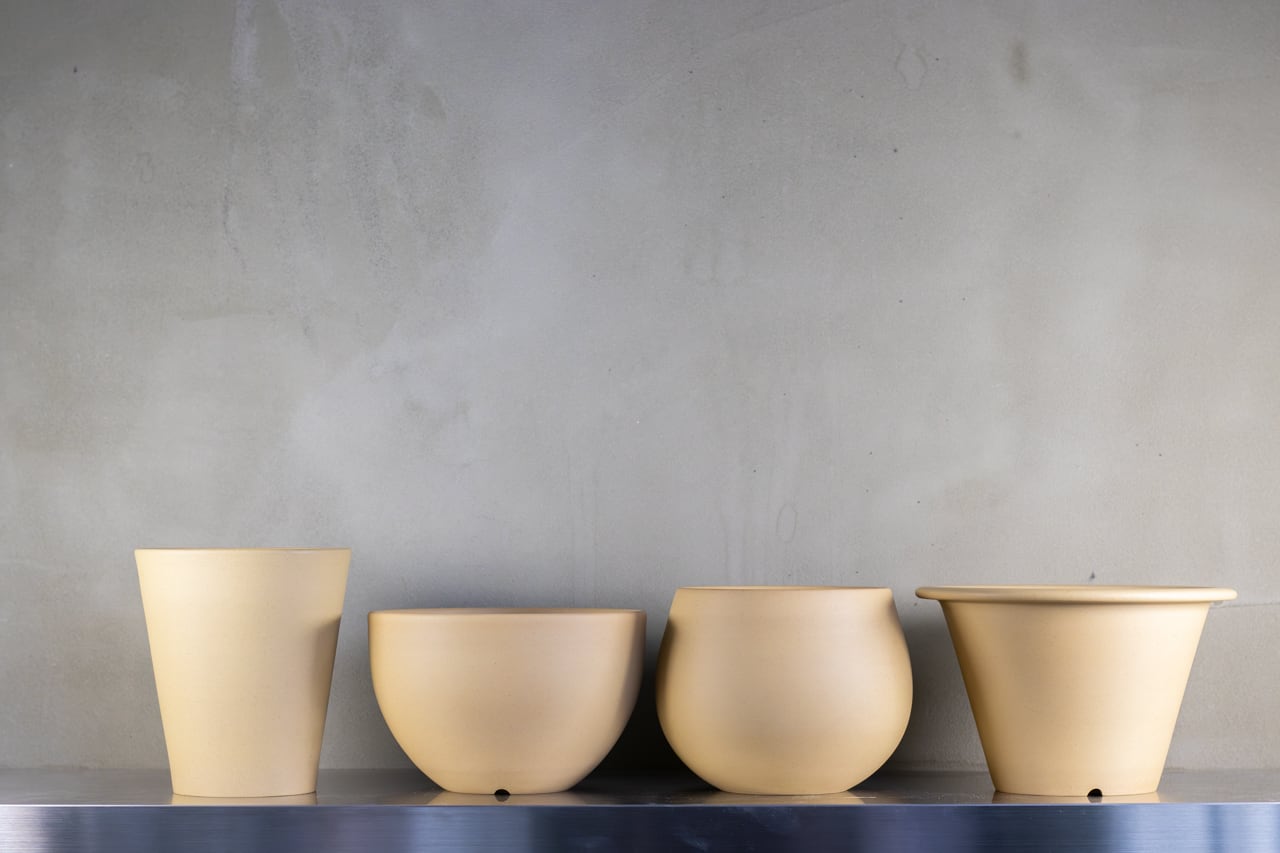 釉薬を使わず土のみで作られる焼締めの作品を中心に制作されています。ろくろ成形で一つ一つ作られており、表面は各工程で磨きを施すことにより手触りの良い質感に仕上がっています。黒い土の作品は炭化による色付けがされています。